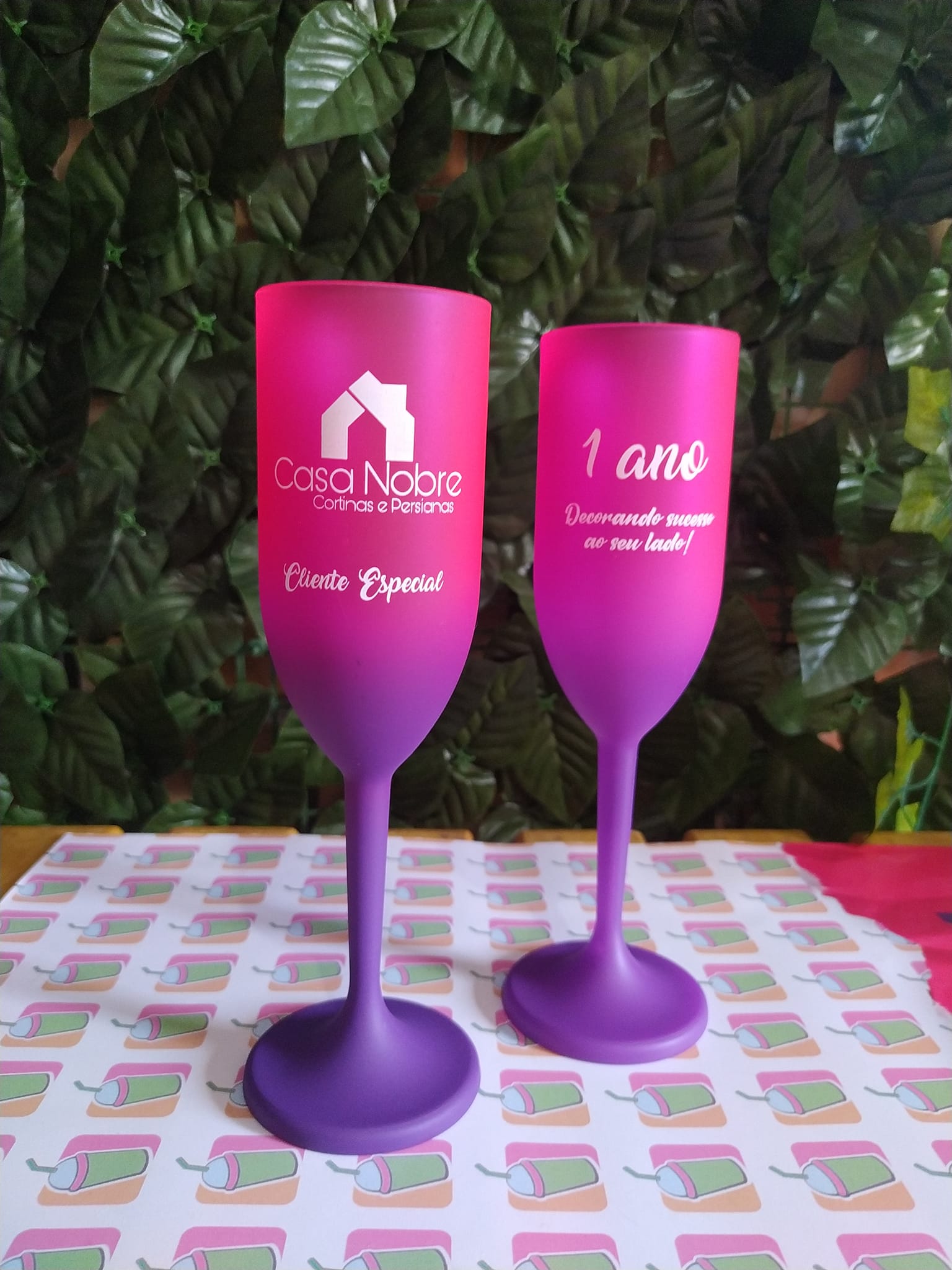 Taça Espumante de Acrílico Personalizada com Serigrafia 360°: leve, refinada e com sua marca em evidência de todos os lados.