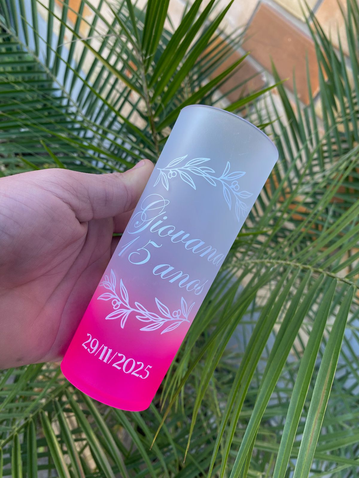 Fabricado em acrílico resistente, é ideal para bebidas variadas — como sucos, refrigerantes, coquetéis e drinks — e pode ser personalizado com serigrafia de alta definição, incluindo aplicação 360°, ao redor de toda a peça.